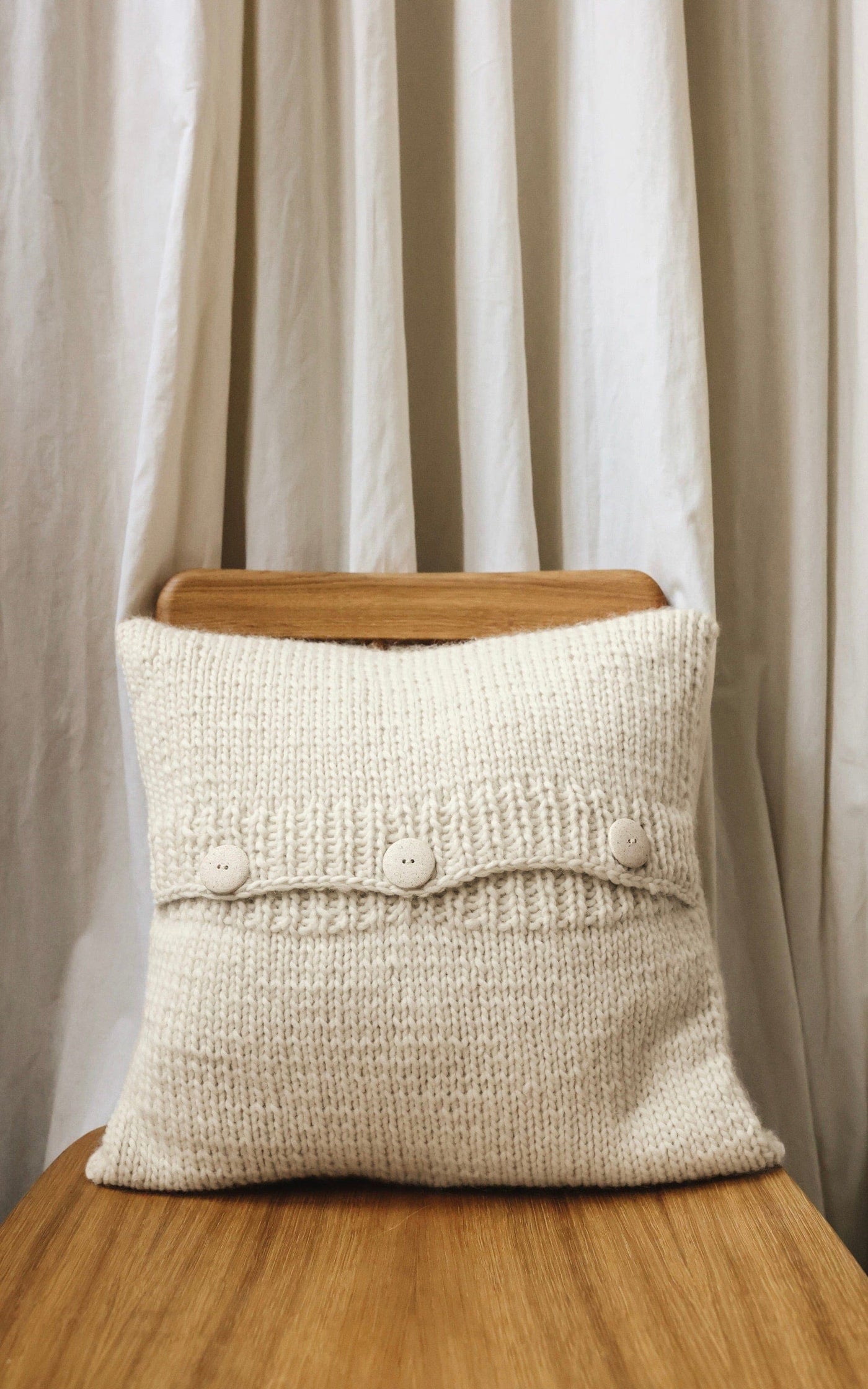 Diese Kissenhülle mit Zierknopfleiste ist dank der PER LEI Wolle besonders weich und kuschlig.