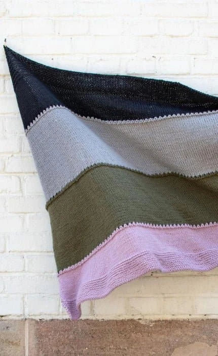 Das Modell auf dem Foto wurde in „Knight Big Vintage GOTS“ in den Farben Pitch (Fb 304), Drizzle (Fb 301), Gunk (Fb 313), Pretty (Fb 310) gestrickt.