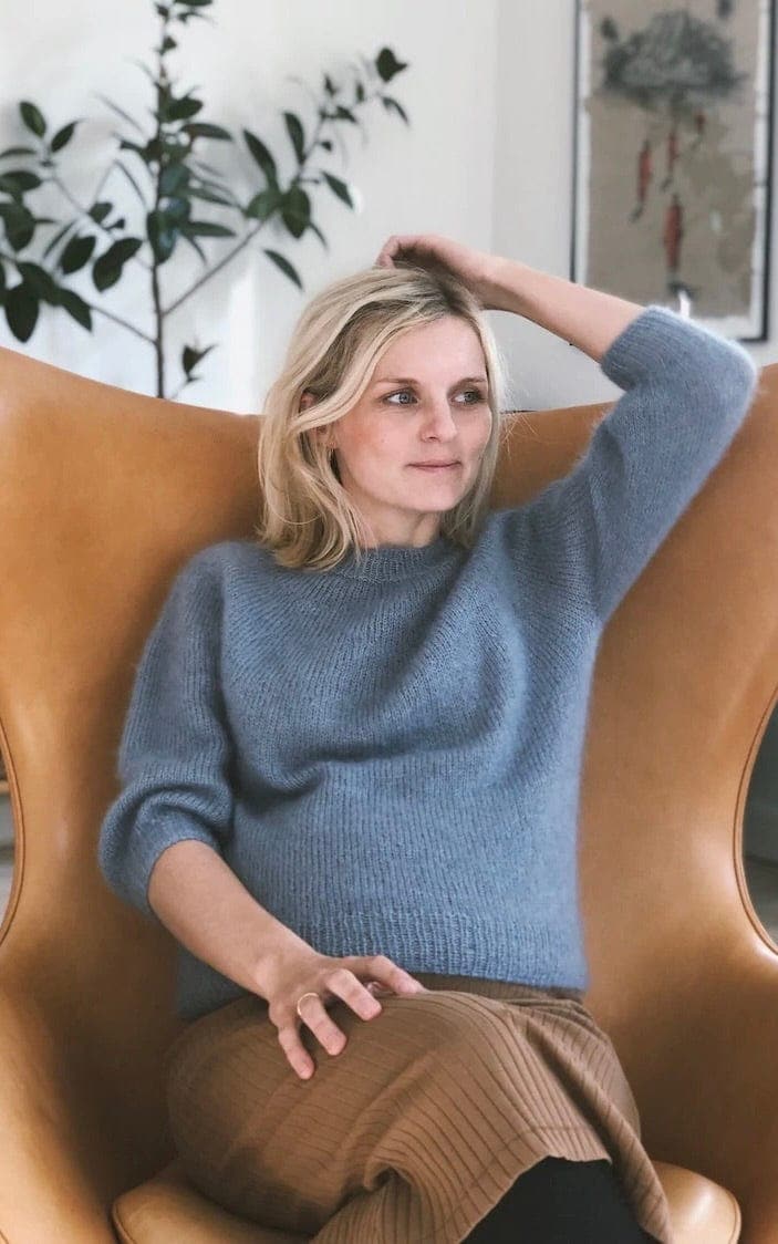 Der Novice Sweater Mohair Edition wird von oben nach unten gestrickt. Das bedeutet, dass Du mit dem Bündchen am Halsausschnitt beginnst, danach die Passe arbeitest, um dann Rumpf und Ärmel zu stricken. Der Pullover wird glatt rechts gestrickt, während die Bündchenabschlüsse im Rippenmuster gestrickt werden.